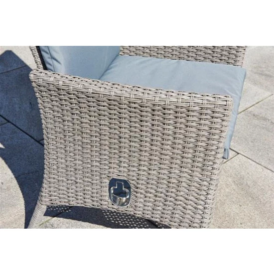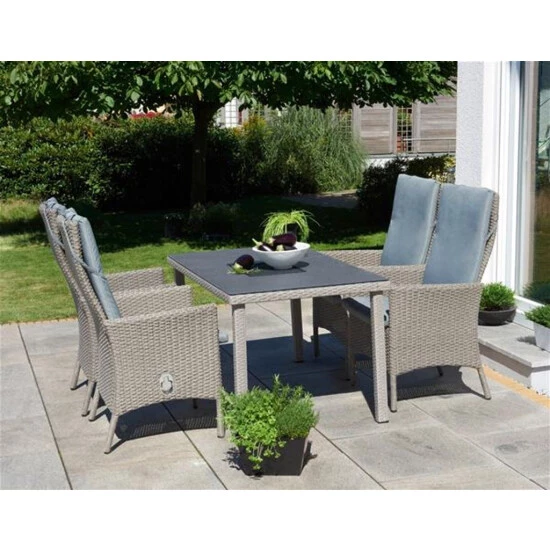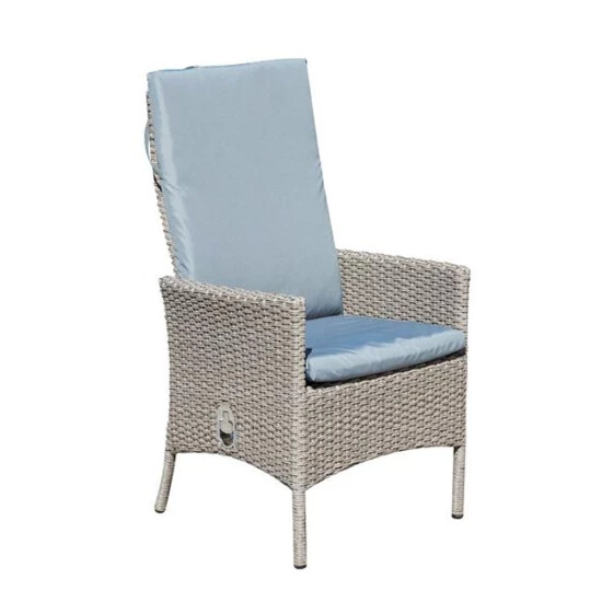 Gartensessel Malmö – Gestell aus Stahl – Polyethylengeflecht grau bicolor – robust, strapazierfähig und langlebig – schmutz – und wasserabweisend – frost – und hitzebeständig – Rückenlehne per Gasdruckfeder verstellbar – inklusive Auflage, ca. 3 cm stark – Maße: – Stellmaß: 66 x 63 x 108 cm – Sitzmaß: 50 x 44 x 50 cm – Gewicht: ca. 12,5 kg – max. belastbar bis 110 kgSerieStuhlMaterialMaterialPolyrattanPolstertypkeine AngabenLagerungkeine AngabenObjekttauglichJaPolyrattanFarbe Gestell:GrauGestell:Polyrattan