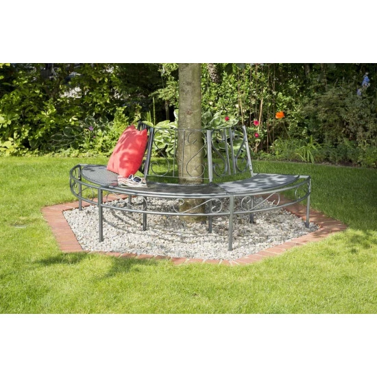 Die halbrunde Baumbank Toulouse hat das Maß von ca. 195 x 110 x 83 cm und besteht auch aus robustem Stahl, welcher mit einer Kunststoffummantelung überzogen wurde. Das macht die Baumbank witterungsbeständig und besonders pflegeleicht. Um einen Baum mittlerer Stärke komplett zu umrunden, werden zwei Elemente der Baumbank benötigt.