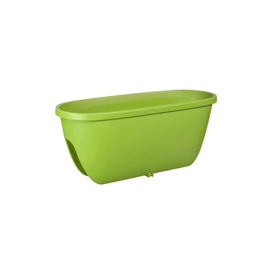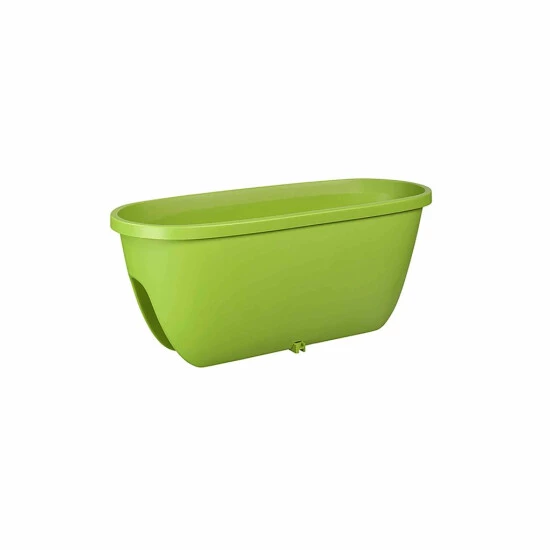 Blumenkasten Balkonia erbsengrün, für Balkongeländer, maximale Geländerbreite 6 cm, ovale Form, Regenwasser-Ablauföffnung, großes Erd- und Wasservolumen, Kunststoff ca. 60 x 26 x H 25 cm