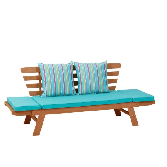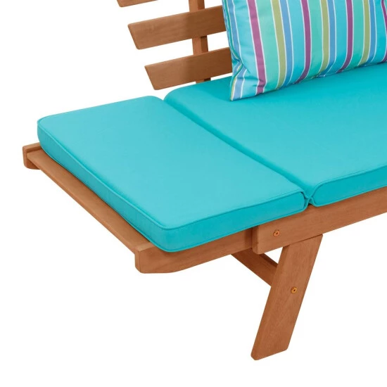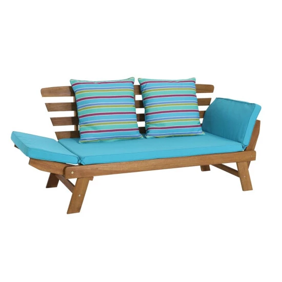 Die schicke Multifunktionsbank Borkum überzeugt mit einem natürlichen Design und hohem Komfort. Sie lässt sich ideal als Sonnenliege nutzen und misst dann ca. 192 x 75 x 68 cm oder auch als gemütliche Bank für zwei Personen, die auf einer Fläche von ca. 130 x 40 x 60 cm Platz zum netten Beisammensein finden. Die Bank wurde aus FSC-zertifiziertem Akazienholz gefertigt und wird mit schicken Kissen und gemütlicher Sitzauflage geliefert. Damit werden Garten und Terrasse noch gemütlicher.