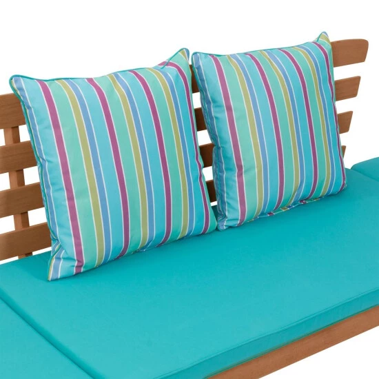 Frische salzige Seeluft auf dem Gesicht, Sandstrand unter den Füßen und scheinbar unendliche Weiten vor dem Auge – die westlichste der Ostfriesischen Inseln, Borkum, beeindruckt mit ihrer Naturschönheit und verspricht Ruhe und Erholung pur. Auch die Sonnenliege Borkum strahlt diese besondere Gelassenheit aus und lädt zum Entspannen ein. Ihre beiden Armlehnen lassen sich flexibel verstellen – somit kann sich das Sofa auch im Handumdrehen zur Liege umwandeln. Hierbei sorgt das passende Sitzkissen in Türkis mit einer Stärke von ca. 5 cm für den maximalen Sitz- und Liegekomfort. Dieses ist, ebenso wie die türkisgestreiften Dekokissen, im Lieferumfang enthalten. Durch die leicht schräge Rückenlehne lässt es sich auf der Multifunktionsbank ideal relaxen – egal, ob im Garten, auf der Veranda, der (Dach-)Terrasse oder dem Balkon. Natürlich kann das formschöne Sofa auch im Wintergarten oder der Loggia eingesetzt werden. So bleiben keine Wünsche offen.