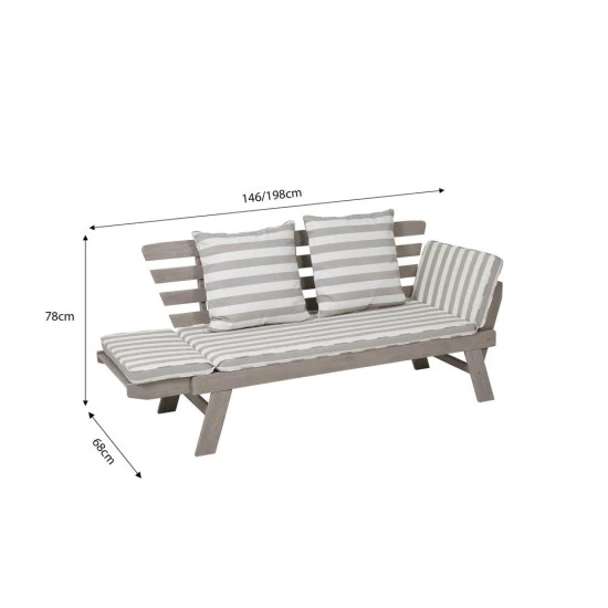 Greemotion Multifunktionsliege Hawaii, Sofa und Liege aus Akazienholz, inkl. Auflagen, 160/192 78 x 68 cm, max. 110 kg, Akazienholz/Polyester, grau