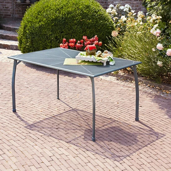 Die Gartentischgruppe Toulouse zeichnet sich durch ein zeitloses Design und einem klassisches Nachbildung aus. Die Möbel dieses Sets sind gleichermaßen stabil und bequem. Das Stahlrohrgestell und das Steckmetall im Sitz sind mit einem wetterfesten Kunststoff überzogen.