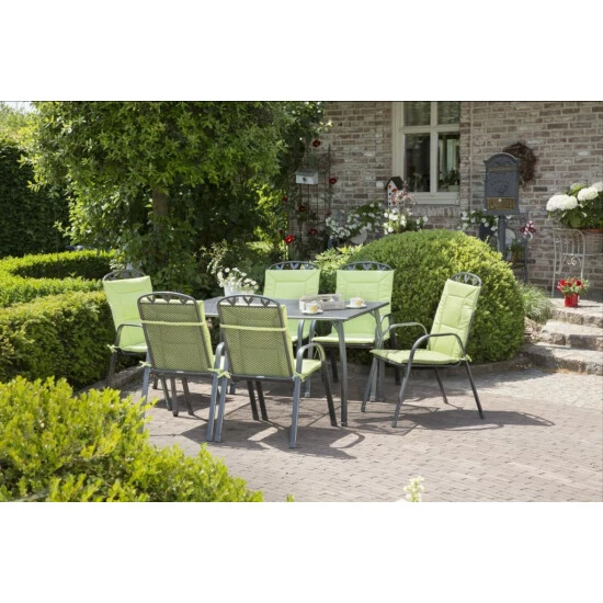 Toulouse lässt einen an Südfrankreich denken, mit seinen lauen Sommernächten, Olivenhainen und den Weingebieten. Für genau dieses leichte und mediterrane Lebensgefühl steht die gleichnamige greemotion-Serie, mit der man sich den Süden nach Hause holen kann. Der große rechteckige Gartentisch der Erfolgsserie Toulouse besticht wie alle Toulouse-Produkte durch seine klassische Optik in Kombination mit dem kunststoffummanteltem Stahlrohrgestell. Die Kunststoffummantelung des Stahlgestells schützt den Gartentisch zuverlässig vor Wettereinflüssen, Korrosion und Druckstellen. Seine Platte ist ca. 140 x 90 cm groß und bietet genug Platz für größere Runden. Dank des höhenverstellbaren Fußes gehören ein wackelnder Tisch oder provisorische Konstruktionen mit Bierdeckeln und Co. ab sofort der Vergangenheit an, denn so können kleine Unebenheiten ausgeglichen werden. Der Tisch ist wetterfest und braucht keine große Pflege. Feucht abwischen genügt und schon sieht er wieder aus . Somit ist er perfekt geeignet für Gartenfreunde mit hohen Ansprüchen und wenig Lust auf aufwändige Pflege.