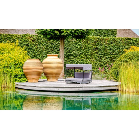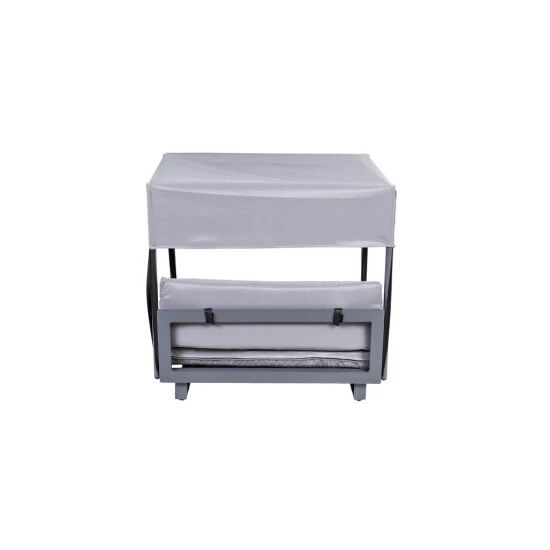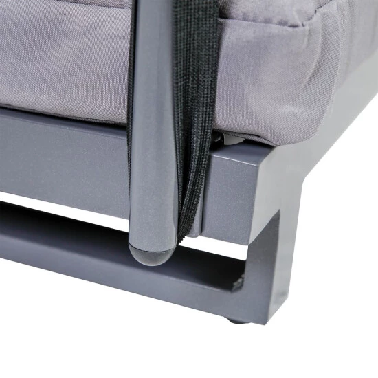 - Gestell aus Aluminium, Farbe: grau, Kissen und Dach aus 100 % Polyester, Farbe: grau – Bezüge mit Reißverschluss, waschbar bei bis zu 40 °C