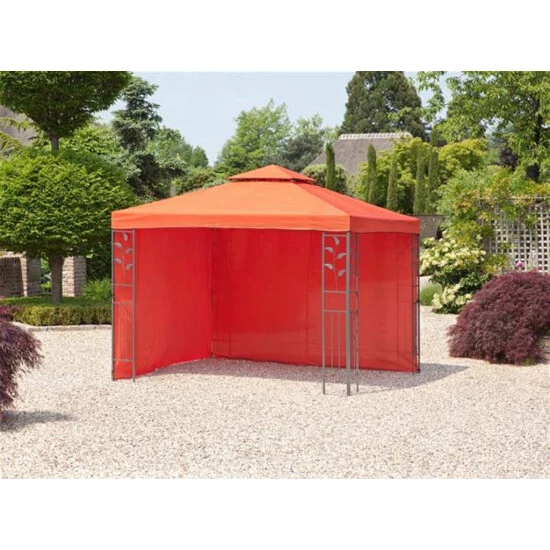 Die Seitenwand für den Pavillon Livorno in der Farbe terracotta ist aus Polyester. 160g/m².