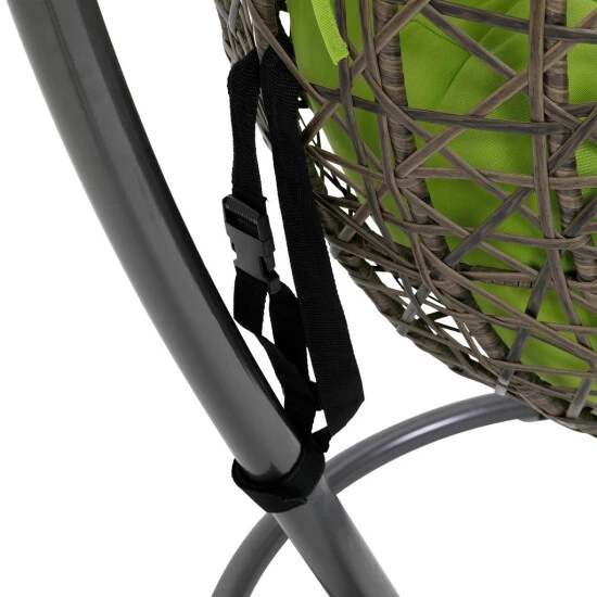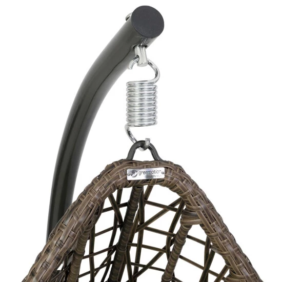 - Gestell aus Stahl, Farbe: anthrazit, Korb aus strapazierfähigem Polyethylengeflecht, Farbe: braun, Auflage aus 100 % Polyester, Farbe: grün, Stärke: ca. 15 cm