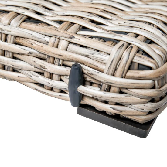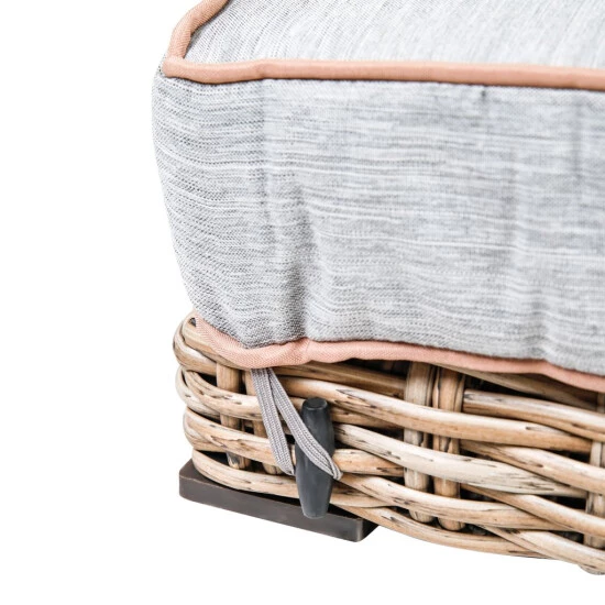 - Gestell aus stabilem Stahl, Geflecht aus Polyethylen, Farbe: braun-beige, Kissen aus 100 % Polyester, Farbe: grau – Bezug mit Reißverschluss, waschbar bei bis zu 40 °C