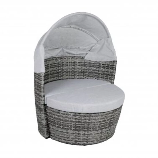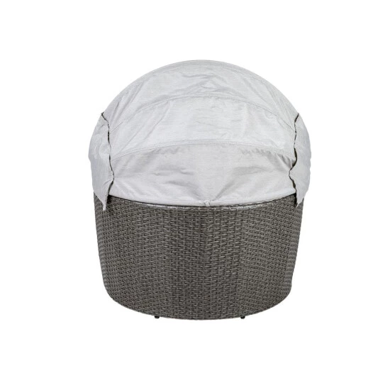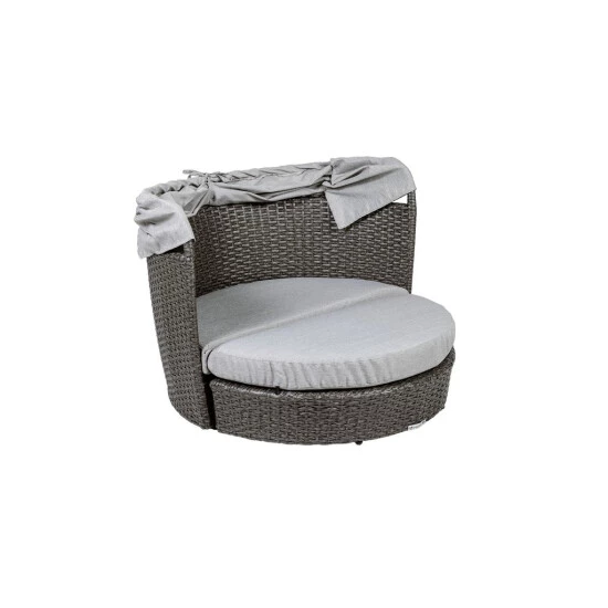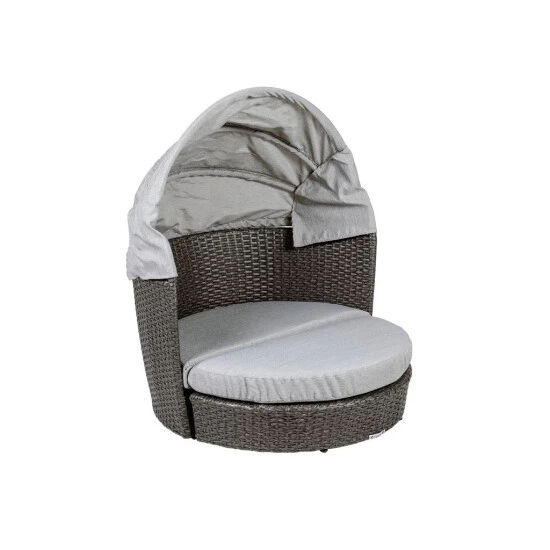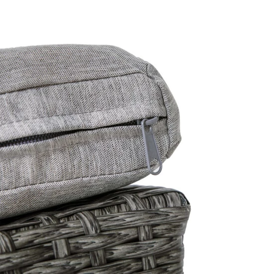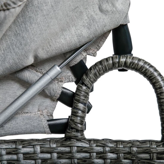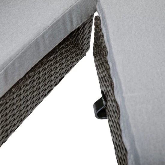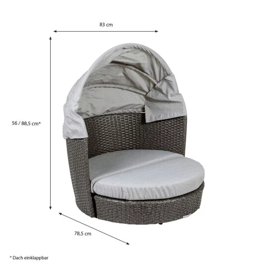 - Gestell aus leichtem Aluminium, Geflecht aus Polyethylen, Farbe: grau, Kissen/Sonnendach aus 100 % Polyester, Farbe: grau – Bezüge mit Reißverschluss, waschbar bei bis zu 40 °C