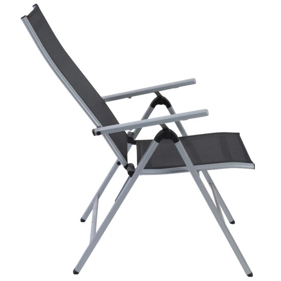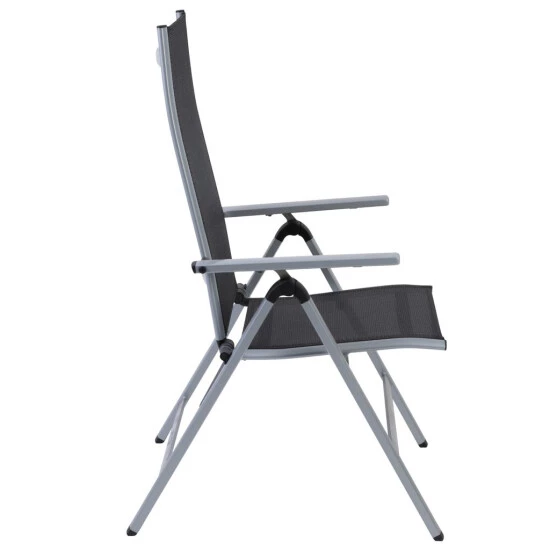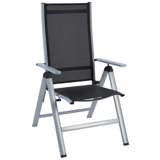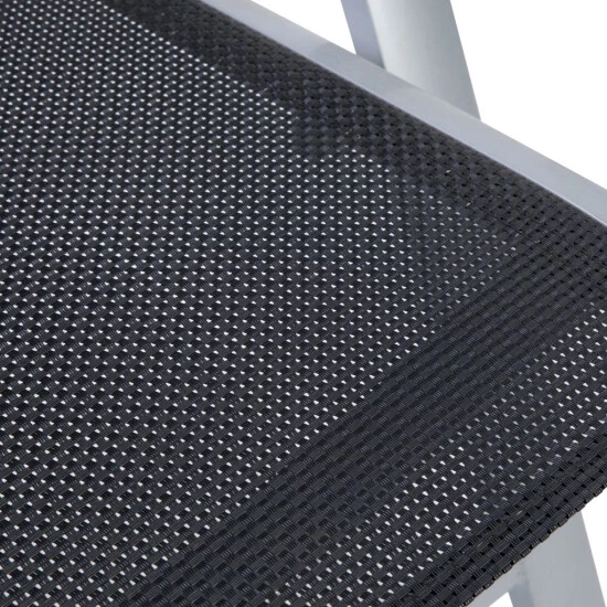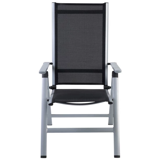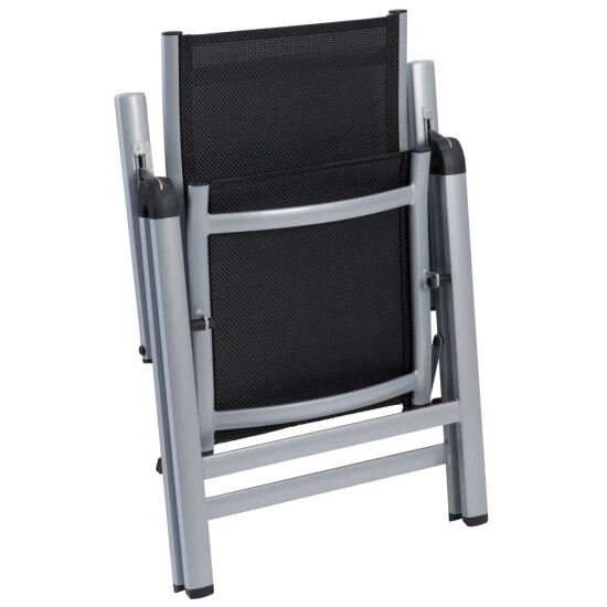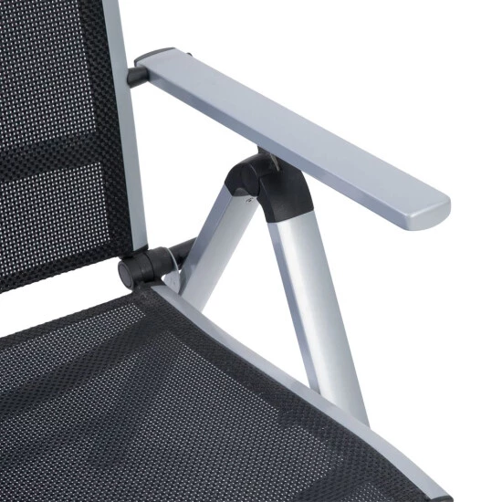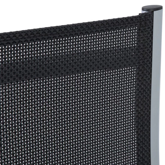 - Sitzfläche und Rückenlehne aus 4×4 Textilene, Farbe: schwarz, Rahmen aus Aluminium, Farbe: silber – pflegeleicht und komfortabel