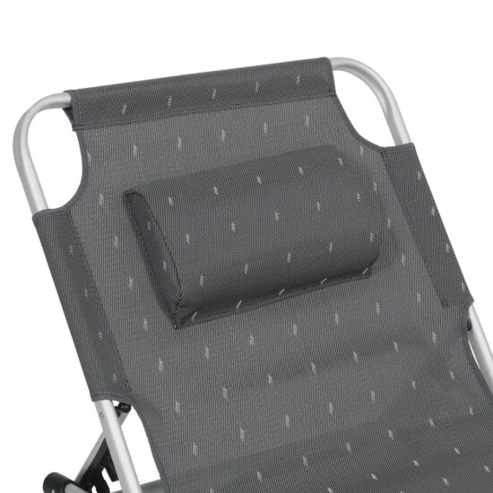 - das Gestell der Lucca Liege von Greemotion ist aus robustem Aluminium gefertigt, mit hochwertigen Kunststoffteilen; die Liegefläche und Rückenlehne sind aus grauer Textilene gefertigt, ein robustes und trotzdem bequemes Material