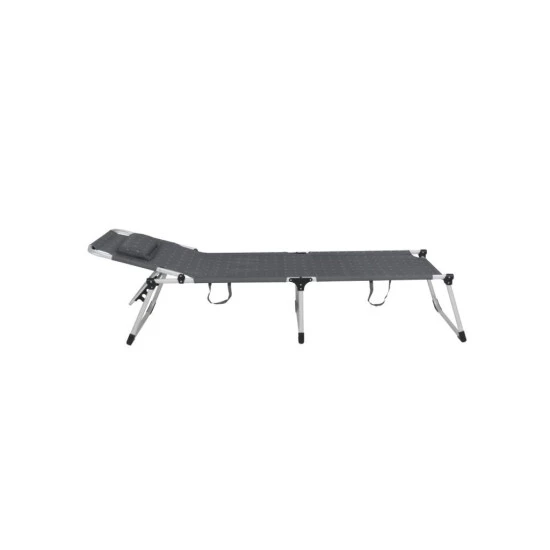 XXL Liege Lucca klappbar, Rückenlehne 5-fach verstellbar Kopfkissen mit Klettverschluss befestigt -> fixe Position Maße: ca. 225 x 46 x 70 cm Liegemaße (variiert): ca. 140 x 46 x 68 cm Klappmaße: ca. 72 x 95 x 18 cm Gewicht: ca. 8 kg Material: Aluminium, Textilene Farbe: grau max. Belastbarkeit: 130 kg