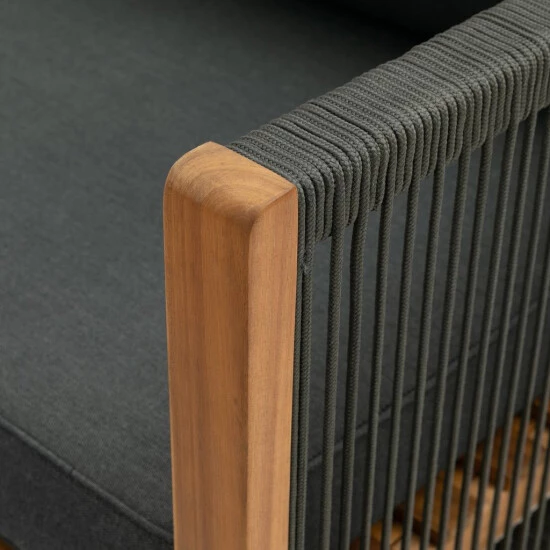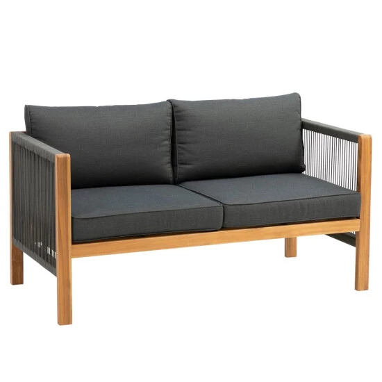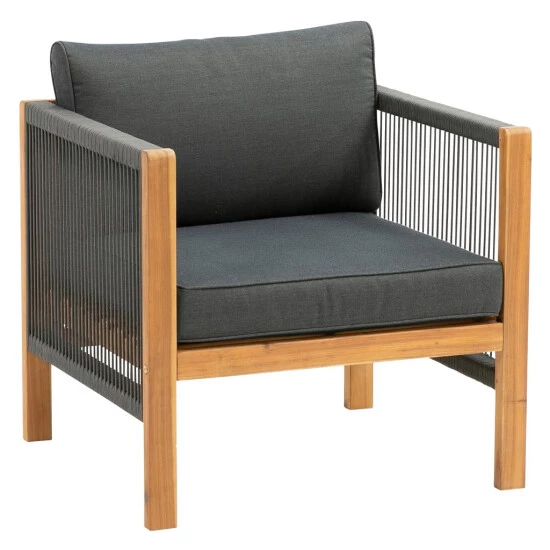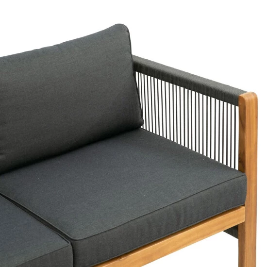 Gestell aus Akazienholz 100 % mit einer natürlichen Maserung, Kissen aus 100 % Polyester (ca. 10 cm), Farbe: grau, Ropes aus 100 % Polyester, Farbe: schwarz