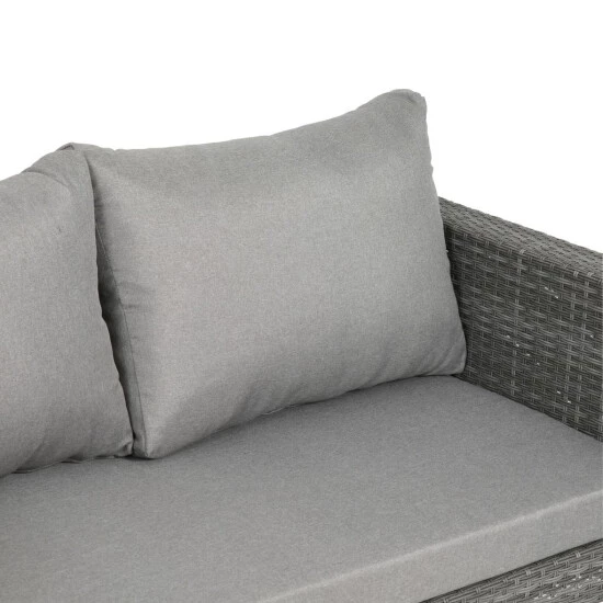 Stilvoller Sitzkomfort – lädt für jede Gelegenheit zum Entspannen ein: Das Lounge-Set Gomera sorgt für modernen Style im In- und Outdoorbereich – für bis zu 5 Personen. Das einladende Ensemble besteht aus zwei 2-Sitzer Sofas, die einfach aneinandergeschoben und dadurch zusammen mit dem praktischen Ecksessel zu einer Sitzecke verbunden werden. Komfortable, ca. 8 cm starke Auflagen in elegantem Anthrazit dienen als gemütliche Sitzfläche. Alle Bezüge sind aus 100 % Polyester und können mittels Reißverschluss abgenommen und gewaschen werden. Tipp: Besonders schön lassen sich hier auch farbige Deko-Kissen platzieren – als interessanter Kontrast und optischer Blickfang zum coolen Grauton. Ergänzt wird die Lounge-Gruppe durch den passenden quadratischen Couchtisch mit attraktiver Glasplatte. Der Material-Mix aus leichtem Aluminiumgestell und doppelt geflochtenem, halbrundem PE-Band ist pflegeleicht und vereint alle Vorzüge eines modernen Gartenmöbelstücks. Es ist strapazierfähig und bereitet somit lange Zeit Freude. Die Garnitur ist aufgrund der einfachen Montage nach der Lieferung schnell einsatzbereit. Das perfekte Urlaubsgefühl für Zuhause.
