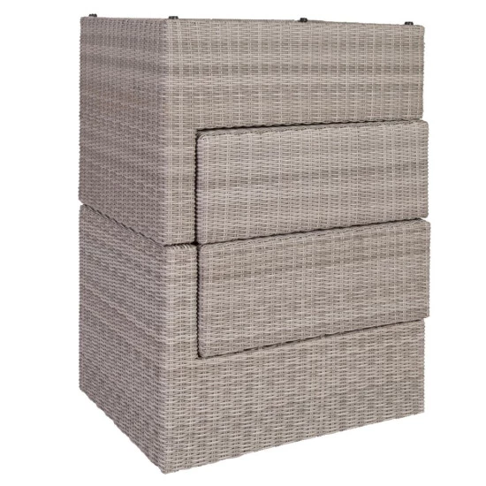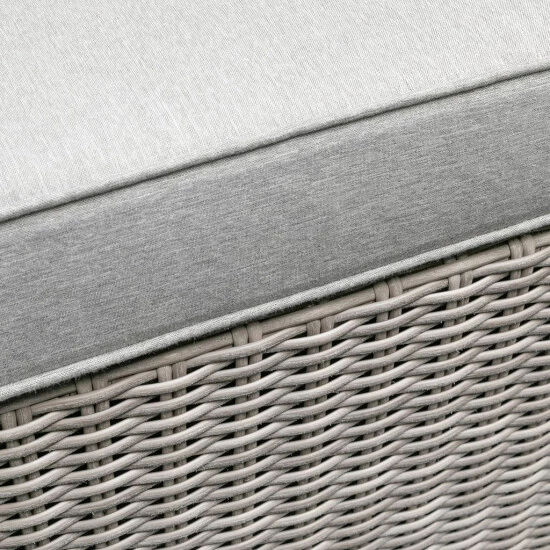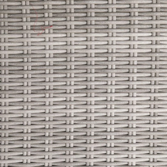- Gestell: Stahl, Geflecht: strapazier- und widerstandsfähiges Polyethylen, Tischplatte: Sicherheitsglas, Kissen: 100 % Polyester, Farbe: grau