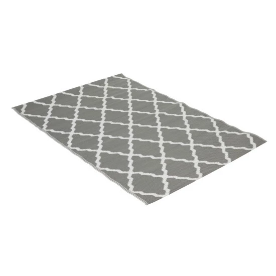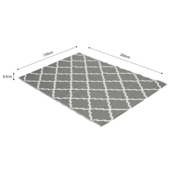 Gut aufgelegt – der stilvolle Outdoor-Teppich Santo ist ein echter Allrounder und passt in jeden Innen- und Außenbereich. Durch das dekorative Rautenmuster und das grau-gemusterte Design ergänzt er dezent und geschmackvoll Sitz- und Lounge-Gruppen aller Art – auf der Terrasse, dem Balkon wie auch im Wintergarten oder Wohnraum. Vielseitig: Zudem kann sich das moderne Multitalent auch als Picknickdecke oder beim Camping einsetzen lassen. Highlight des Außenteppichs mit doppelt genähtem Rand ist die wasserabweisende Oberfläche aus 100 % Polypropylen (440 g/m²). Diese präsentiert sich besonders pflegeleicht, denn sie ist einfach mit Wasser und bei Bedarf mit leichtem Reinigungsmittel zu säubern. Zusätzlicher Vorteil: Das Material ist beständig gegen UV-Strahlung – und macht den Teppich zum neuen Liebling im Outdoor-Bereich. Wird die Bodenzierde für den Winter verstaut, lässt sie sich einfach und platzsparend aufrollen und mit Bändern fixieren. Somit bleibt die ca. 15 cm schmale Rolle in runder Form gut verwahrt und passt auch in kleine Nischen, zum Beispiel im Gartenhaus oder im Keller. Der flexible Bodenbelag misst ca. 200 x 150 cm – eine echte Bereicherung für Haus und Garten.