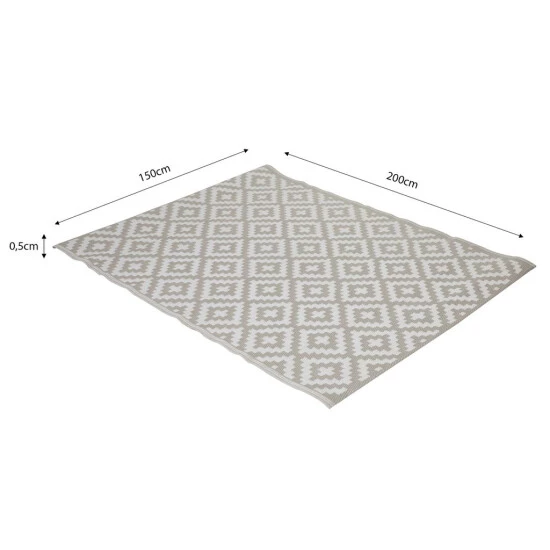 Outdoor-Teppich, ca. 200 x 0,5 x 150 cm Maße: ca. 200 x 0,5 x 150 cm Material: Polypropylene 100%, 440GSM, doppelt-genäht Farbe: weiß/beige wasserabweisende Oberfläche
