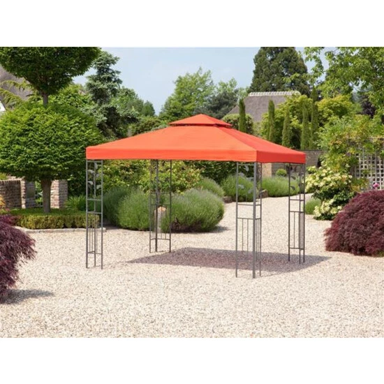 Der Pavillon Livorno als Schattenspender oder einfach ein romantisches Accessoire. Der Pavillon ist sowohl funktional als auch formschön. Gestell: Stahlrohr blattförmige Applikationen Farbe: eisengrau Dach: PA Beschichtung 180 g/m² Polyester UV-Schutz: 50+ wasserabweisend mit Dachentlüftung Farbe: terra Maße: L 300 x B 300 x H 280 cm Durchgangshöhe: ca. 195 cm Gewicht: ca. 32 kgPavillonFilter Pavillon / Festzelt300 x 300 cm