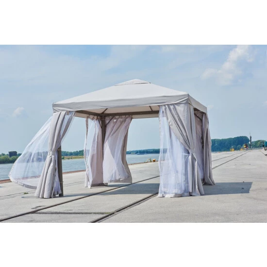 Greemotion Pavillon Portland, zerlegbar, 300 x 300 cm, Seitenwände mit Reißverschluss schließbar, Moskitonetz, Aluminium/Stahlgestell/Polyesterwände