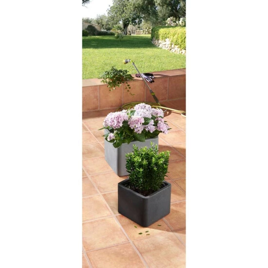 Der eckige Pflanzkübel aus Kunststoff ist robust, pflegeleicht und UV-beständig. Die graue Zement-Optik sorgt für ein natürliches Ambiente. Der formschöne Pflanzkübel macht nicht nur im Außenbereich, sondern auch im Büro, Wohnzimmer oder in der Küche eine super Figur.