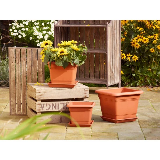 Greemotion Pflanzkübel Pia, eckig, aus Kunststoff, 28 x 28 cm in terrakotta
