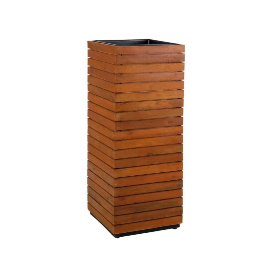 Greemotion Pflanzsäule aus recyceltem Akazienholz, 43,5 x 43,5 x H115 cm, herausnehmbarer Einsatz, in-/outdoorgeeignet, Platztopf in geölter Optik