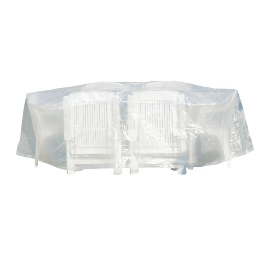 Schutzhülle für Sitzgruppe bis Ø 200 cm; mit Ösen und Saum; Farbe: transparent; Material: PE-Bändchengewebe; Artikelmaße: bis ca. Ø 200 cm; Artikelgewicht: ca. 1,0 kg