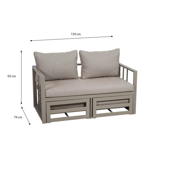 - Sofa: ca. 134 x 63 x 74 cm, Sitzmaße: ca. 124 x 35,5 x 69 cm, Hocker: ca. 57 x 35,5 x 68 cm, ausgezogen: ca. 134 x 63 x 130 cm, max. Belastbarkeit: 2x 110 kg, Gewicht: ca. 25 kg