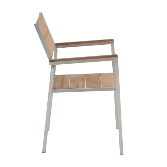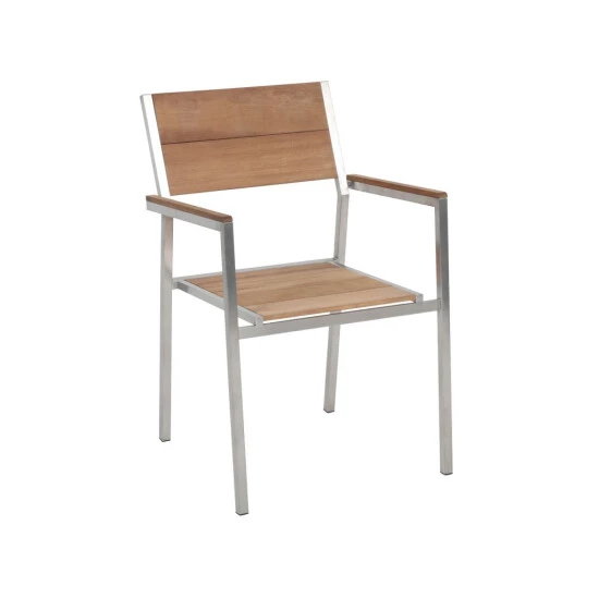 Greemotion Stapelsessel San Diego, Teakholz/Edelstahlgestell, 53 x 84 x 56 cm, Sitzhöhe 45 cm, gebürstete Optik, naturbelassene Holzoptik, max. 110 kg