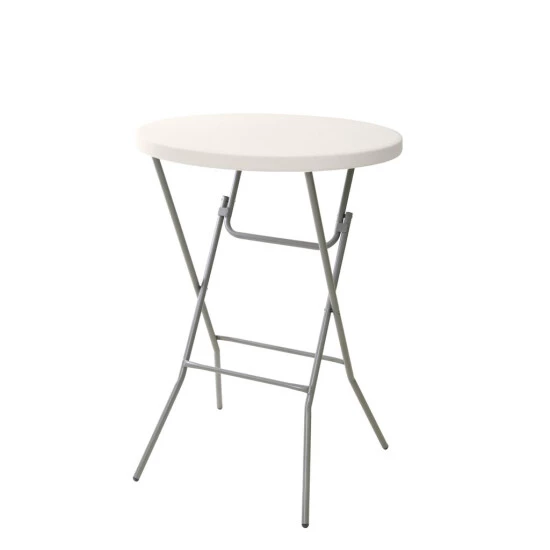Dieser Stehtisch mit robuster Kunststoff-Tischplatte ist vielfältig einsetzbar. Ob bei Events, Geschäftsfeiern, Eröffnungen oder Vernissagen, Produktvorstellungen oder auf Messen: Auf diesem Stehtisch lassen sich Ihre Produkte optimal präsentieren. Hier können Sie Verkaufsgespräche führen oder einfach nur eine kurze Pause einlegen. Der Stehtisch mit den Maßen 80,0 x 80,0 x 110,0 cm bietet auf seiner runden Tischplatte genug Platz, um Getränke oder Snacks anzubieten. Und wenn er nicht wird, ist dieser Stehtisch schnell und einfach zusammengeklappt und verstaut.