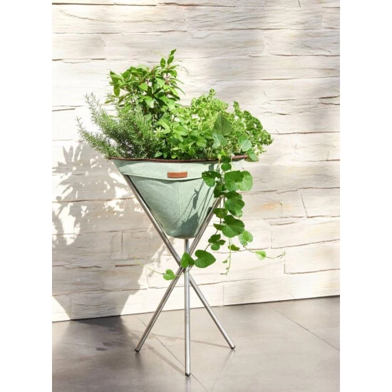 * Textiler Pflanzenbehälter aus hochwertigem und outdoorfähigem Gewebe * Dank Dreibeinkonstruktion flexibler Stand auf allen Untergründen Der textile Pflanztopf TRIPOTT ist ein Blickfang im Garten auf der Terrasse oder auf dem Balkon. Seine Höhe von 74 cm eignet sich hervorragend zum Gärtnern egal ob zum Anbau von Kräutern Gemüse oder Zierpflanzen. Der 3-schichtige Pflanzbeutel ist herausnehmbar und sorgt für ein optimales Wurzelklima. Das Gestell aus Edelstahl sorgt für Stabilität und unterstreicht das außergewöhnliche Design. * Stilvoller Hingucker auf jeder Terrasse und jedem Balkon * Herausnehmbarer Pflanzbeutel mit eingenähtem Tunnelzug * Sorgt für ein optimales Wurzelklima * Einfacher Aufbau ohne Werkzeug * Volumen ca. 12 Liter * Maße ca: 50 x 45 x 78 cm Lieferung ohne Pflanze!