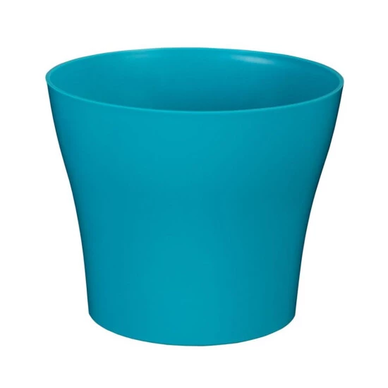 Der Übertopf Tulipan ist in der Farbe türkis erhältlich. Es gibt den Top in 5 verschiedenen Größen. So können Sie je nach Pflanzengröße den richtigen Topf erwerben. Der Topf besteht aus soliden Kunststoff.