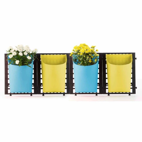 Wand-Pflanztöpfe Kunststoff, 4-er Set, je 2 Stück in den Farben gelb und petrol, praktische Lösung um platzsparend (keine Stellflächen benötigt) Terrasse und Balkon zu begrünen, kann auch zur Anzucht für Kräuter, Gemüse und Blumen genutzt werden, schafft ein freundliches und helles Ambiente auf Terrasse und Balkon, durch einfaches Stecksystem verschiedene Möglichkeiten (horizontal/vertikal) die Elemente zusammen zu bauen Größe je Pflanztopf ca. 19 x 13 x 27 cm Größe je Element ca. 25 x 14,5 x 30 cm