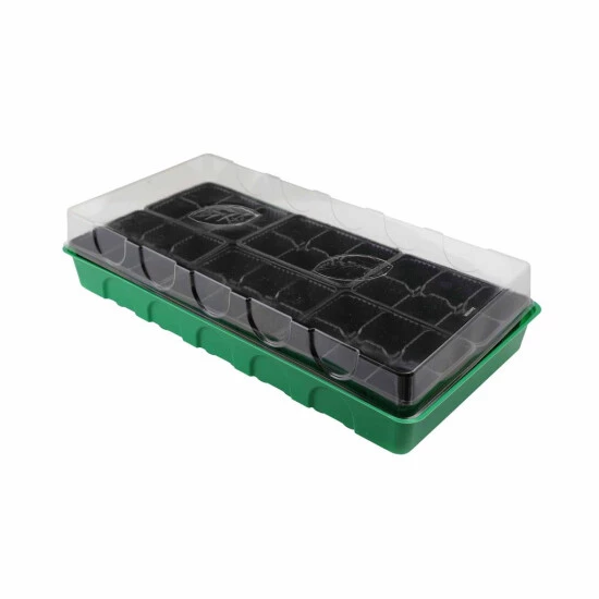 Zimmergewächshaus, 54,5×28,5×7,5cm mit 6 x 6 Kulturschalen Material: PS (Schale/Einsätze), PET (Deckel) wiederverwendbar, viel Platz (36 Töpfchen) optimal zur ersten Anzucht geeignet, einfache, erfolgreiche Anzucht, Aussparungen geben handelsüblichen Quelltabs guten Halt, viel Platz trotz kleinen Abmessungen (auf vielen Flächen stellbar), lichtdurchlässiger Deckel (Treibhauseffekt – schnelles Gedeihen) ca. 54,5 x 28,5 x 7,5cm, inkl. Deckel: ca. H12cm