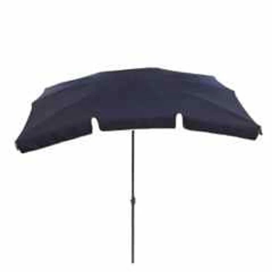 Terrassenschirm, anthrazit/blau 10 Sprossen, rechteckig, zweiteiliger Stahlmast, Neigung durch Knickgelenk verstellbar, UV50+ Rohr-Ø 32 mm Stahl/Polyester (140g/m²) Maße: ca. 230 x 150 cm Höhe: ca. 238 cm Gewicht: ca. 3,5 kg